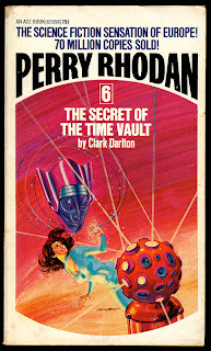 The original German issue appeared the day before I did. I was born on Saturday 18 November 1961. And every Friday thereafter (I presume – the math seems to work out), down to today (I'm actually writing this on Friday 4 March 2011), there has been a new Perry Rhodan adventure. That is mind-boggling. And I guess, if nothing else, it means I could always know how many weeks old I am! The current issue is #2585, minus ten previous issues equals 2,575 weeks. Wow. (Interestingly, the official website from which I'm getting the original publication dates currently is in error as to today's date, listing it as “Fr., 3. März 2011” - http://www.perrypedia.proc.org/wiki/Quelle:PR2585 .)